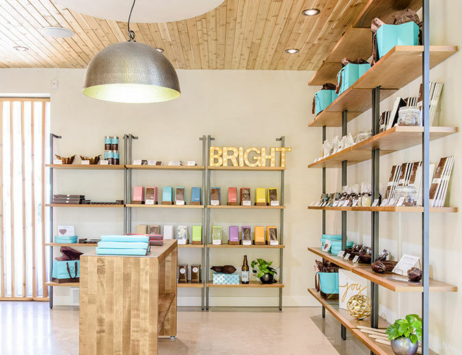 We worked with the designer, Keith Hlewka of Kaben Design in Calgary to create a space that showcased the luxury of Jacek Chocolate through beautiful product displays and shop ambiance. Attention to detail was key to creating a feeling of modern luxury: polished concrete floors, white concrete countertops, clear-stained cedar ceilings, American clay and limestone walls, an overhead door to separate spaces, cedar screens over the windows and stairwell—the list goes on! The entire project took about 11 weeks of hard work to transform the 1600 square feet space, but we think it was worth it.