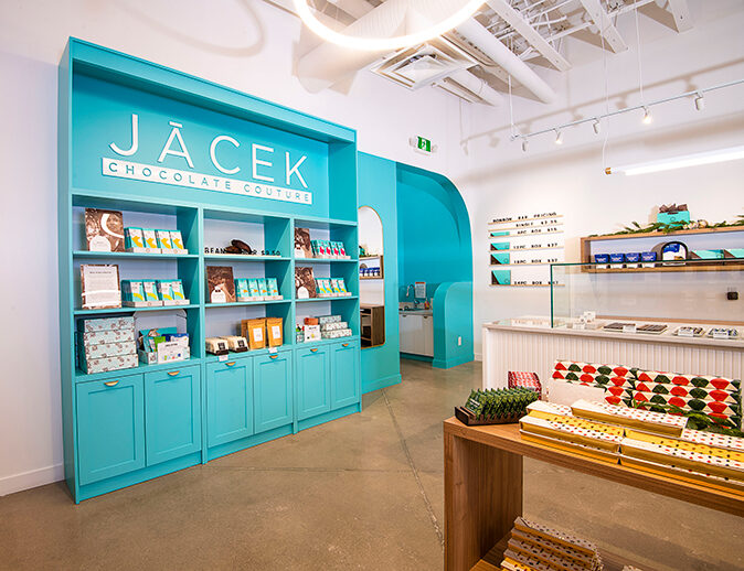 North Elm was thrilled to work and partner with Jacek Chocolate Couture on this new Edmonton Crestwood location. As the second build that we’ve done for Jacek, the retail space provides a nod to their original Sherwood Park store, while also providing a more modern, minimalistic, and open shopping experience.